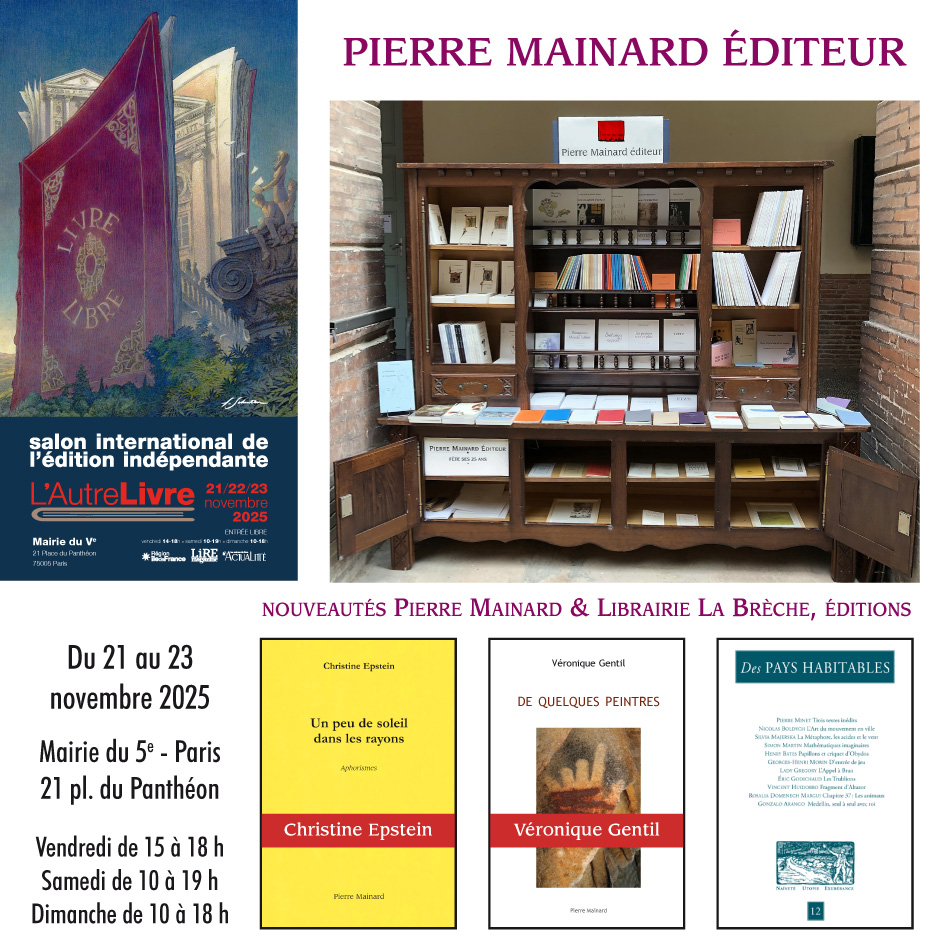 Pierre Mainard éditeur sera présent au salon de L’Autre Livre à Paris en compagnie des éditions Le Cadran ligné.